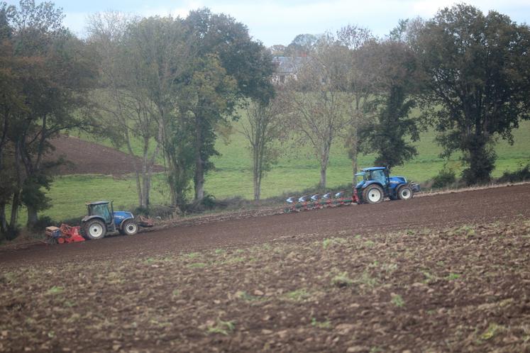 Après l'orge (5 ha) et le triticale (8 ha), c'était l'heure du semis de blé (17 ha) pour Christophe Fouquet, agriculteur chevronné dont le "camp de base" est à Mont-Saint-Jean mais qui jouit aussi d'un second site à Douillet-le-Joly. C'est là-bas, à la Barbière, sur une parcelle à la surface très arrondie et caillouteuse que nous l'avons retrouvé lundi pour son troisième et dernier jour de chantier. Un peu plus tard qu'à l'accoutumée à cause de la pluie continue de la semaine précédente mais bien plus tôt que l'année passée à cause de la capricieuse pluviométrie. "Les conditions sont plutôt bonnes cette année. Derrière le labour, ça ''fleurit'' bien. Globalement, ça se ressuie bien. Le sol ne colle pas aux semelles !"
